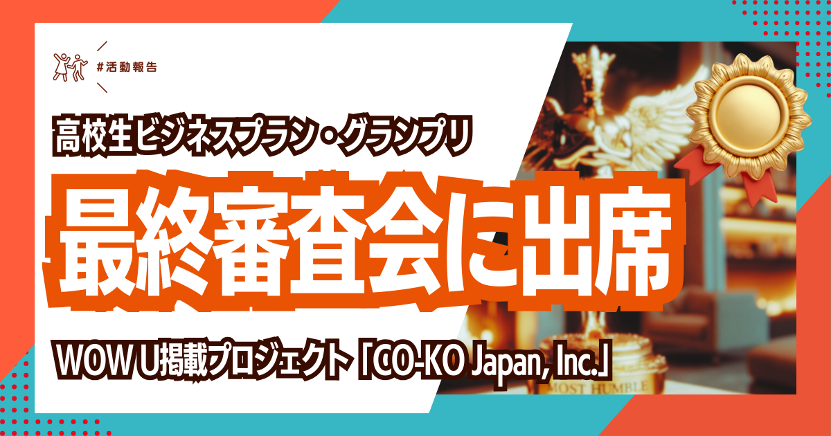 このグランプリにて、当社のサービス「WOW U」を活用してプランを作成した静岡県立沼津商業高等学校のチーム「“CO-KO”Japan株式会社」が、応募総数の中からファイナリスト(ベスト10)として審査を受けました。